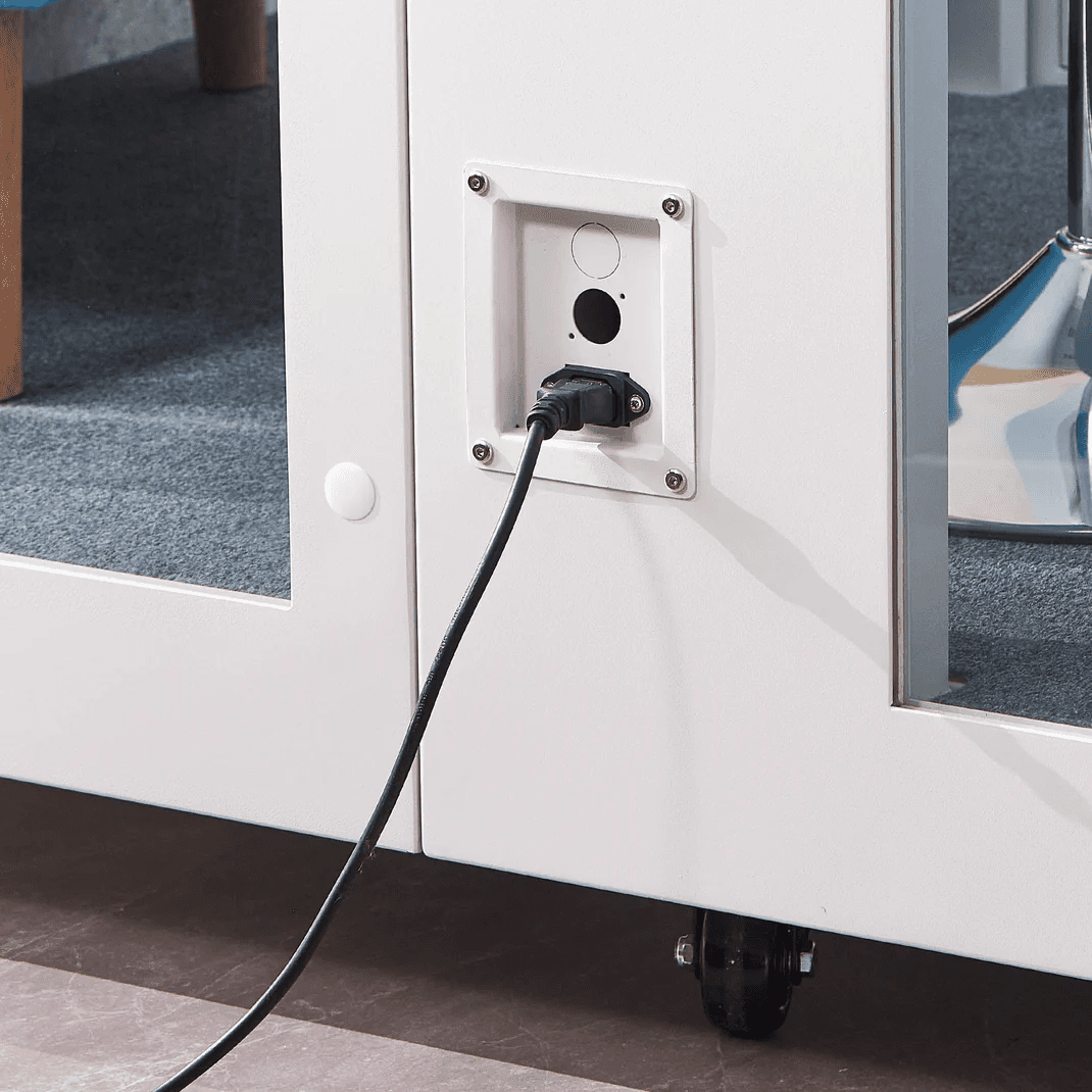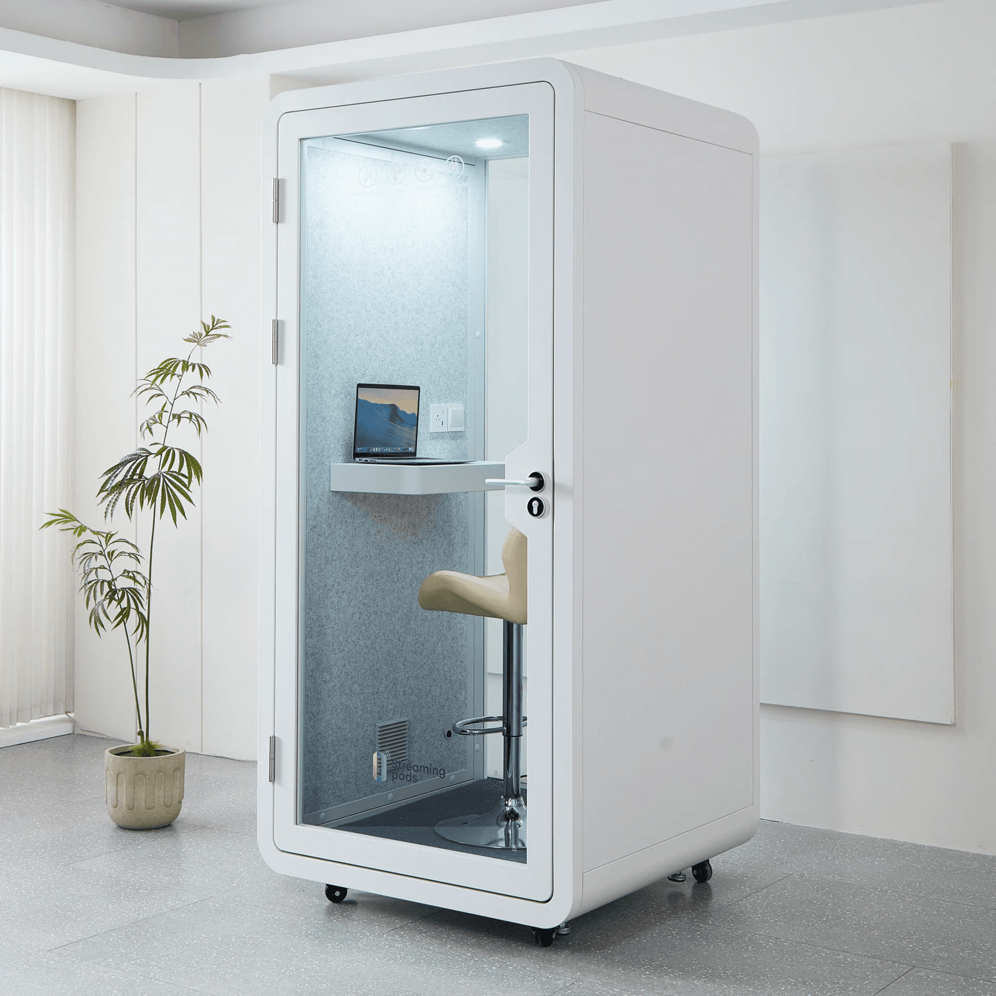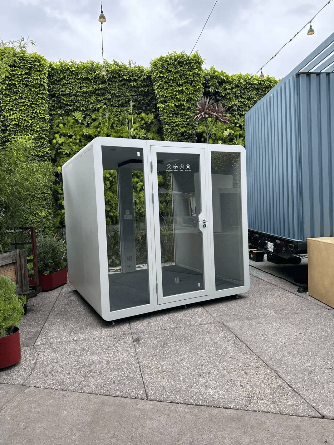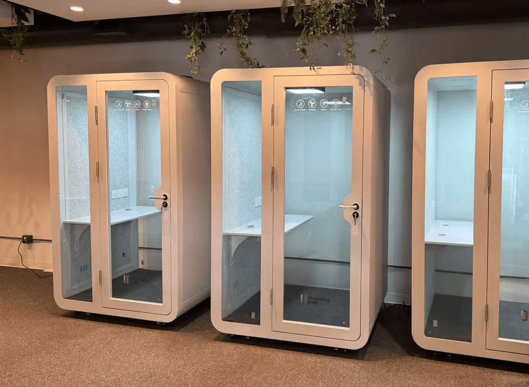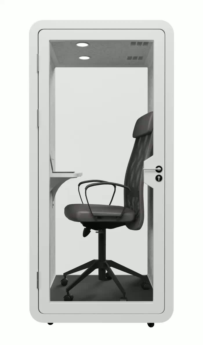 Each pod includes silent airflow ventilation and dimmable, warm LED lighting that keeps the space comfortable for long work sessions.