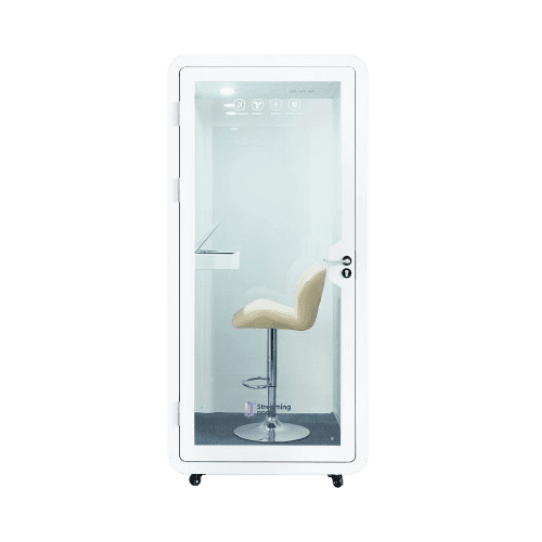 With its minimal footprint, this single person office pod is perfect for small spaces. Despite its compact design, the interior offers a spacious and functional workspace, making it an excellent choice for modern home offices.