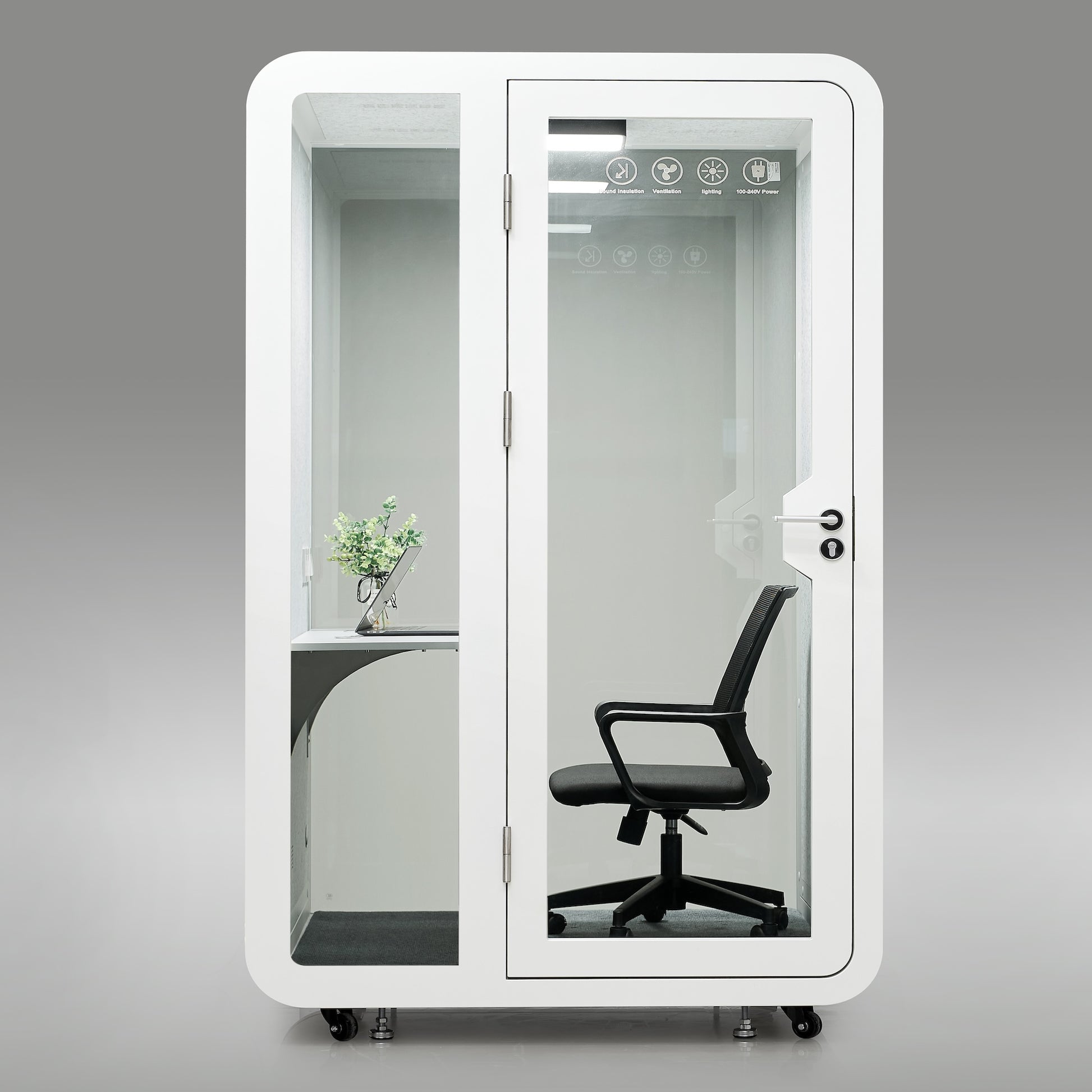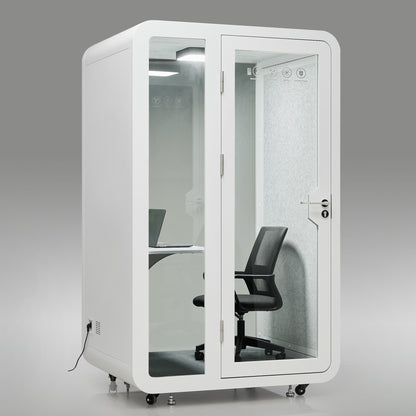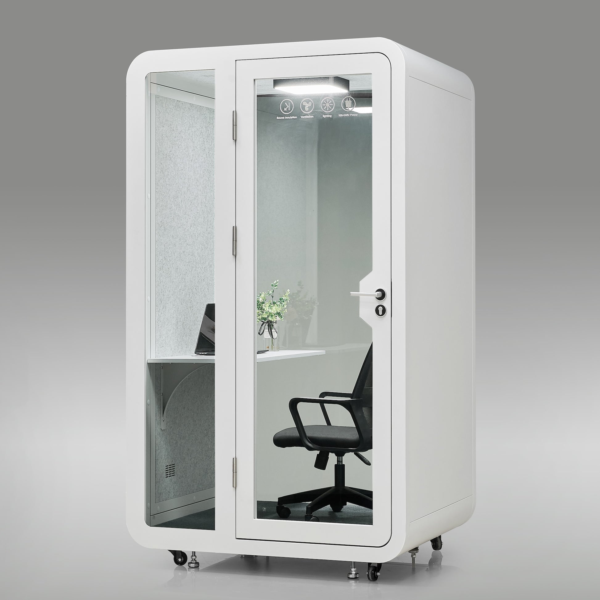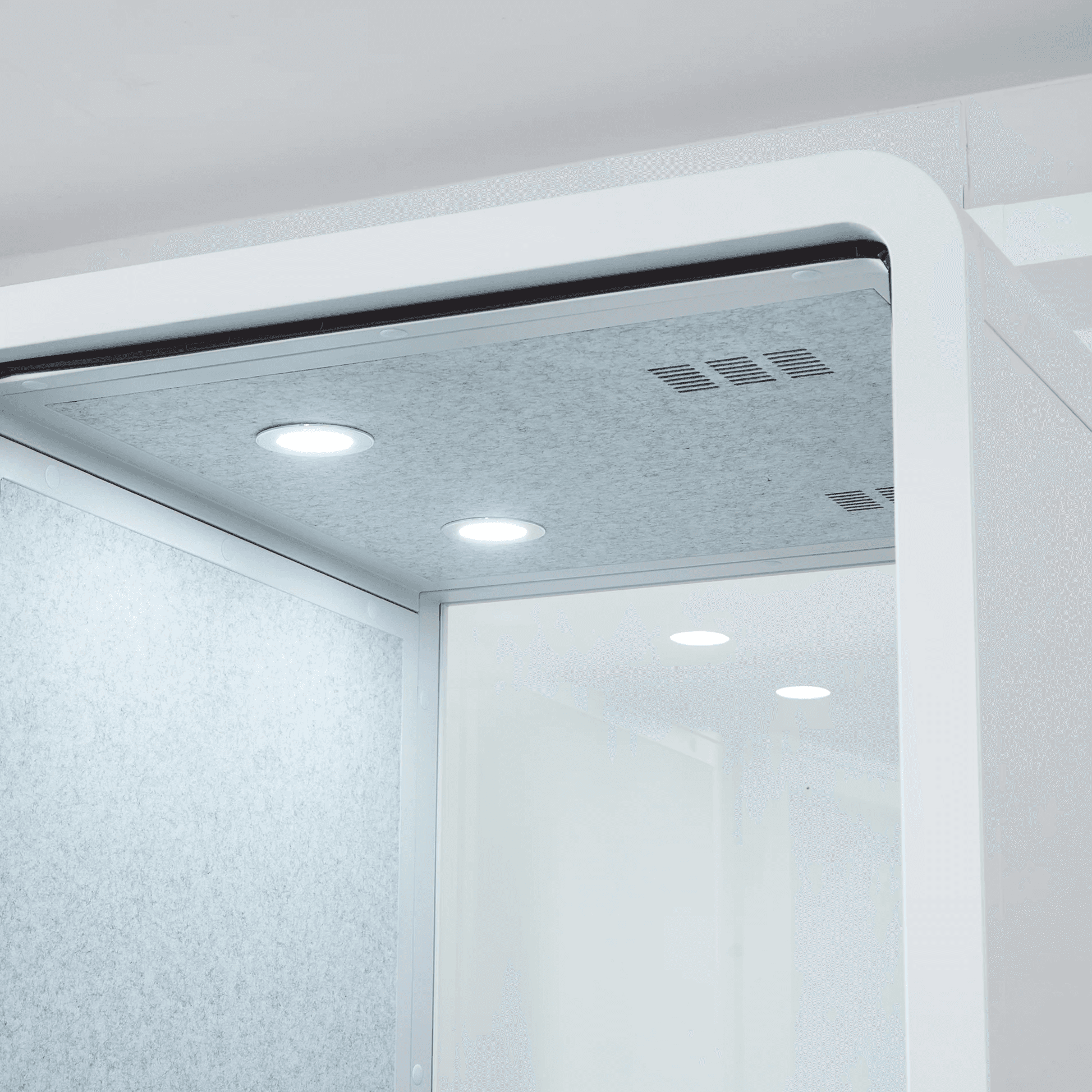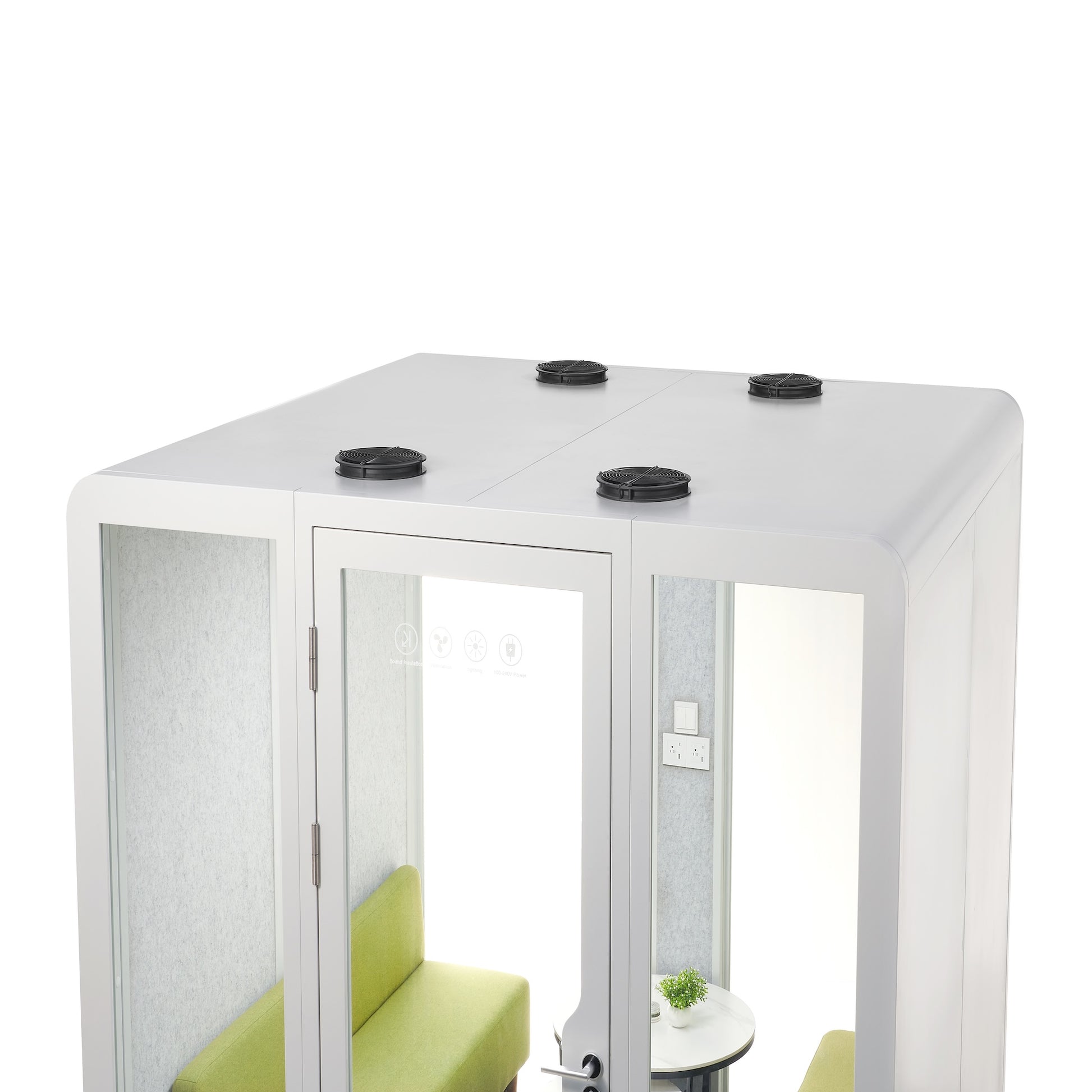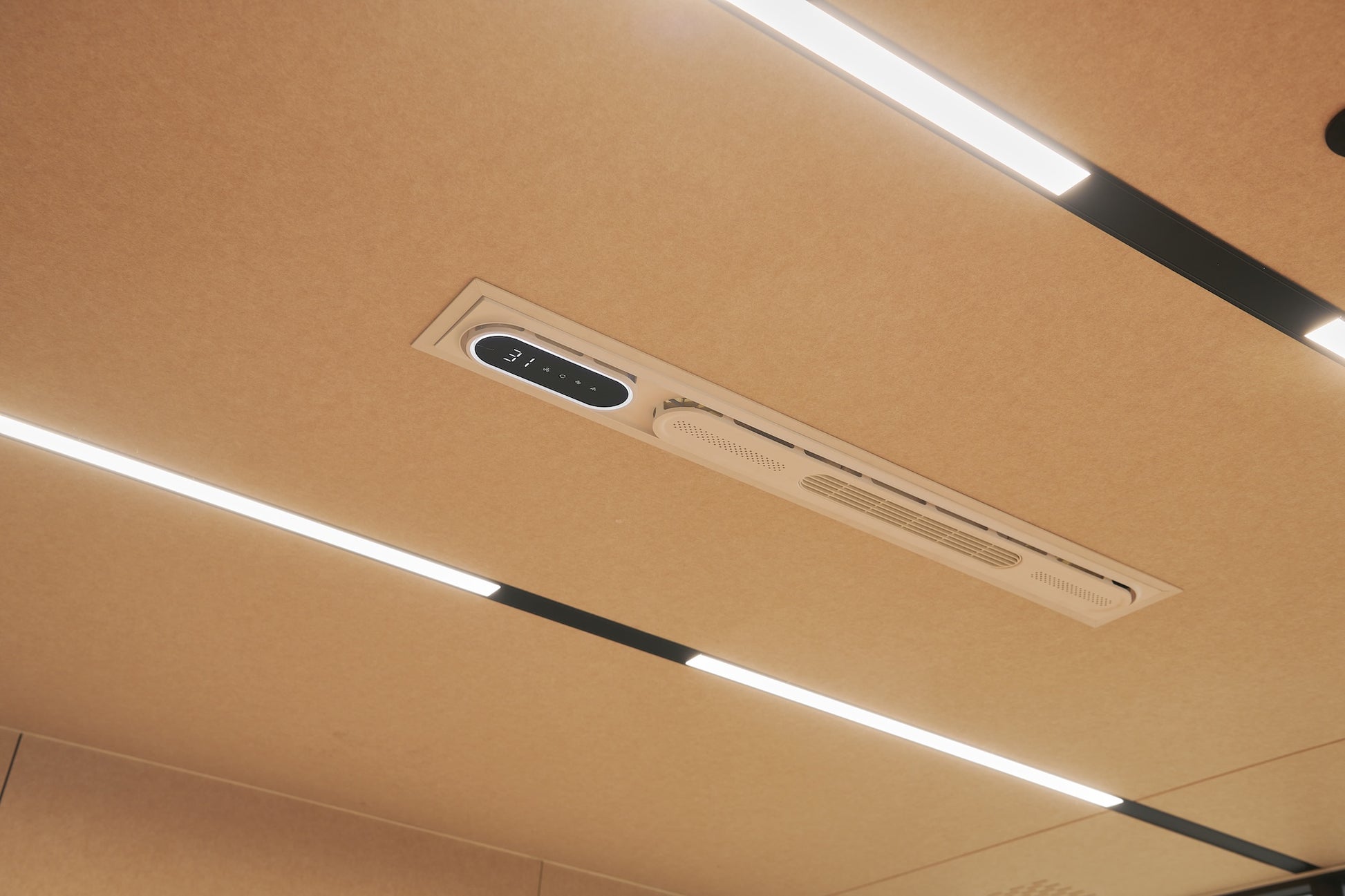 SGS-certified Class-A acoustic rating for distraction-free focus. Dual fan ventilation maintains comfort with minimal noise. Integrated AC power, USB-A and USB-C ports with natural LED lighting support continuous work.