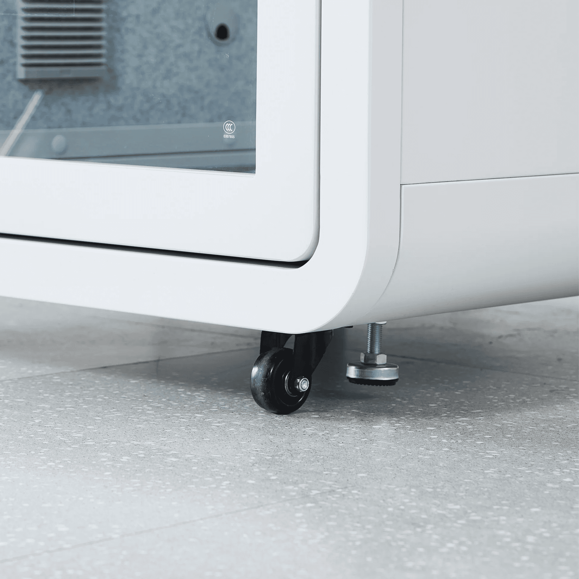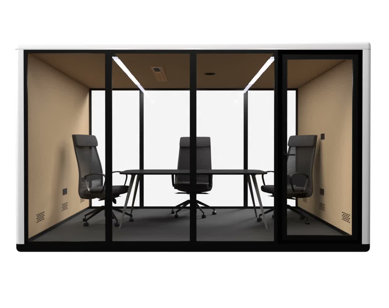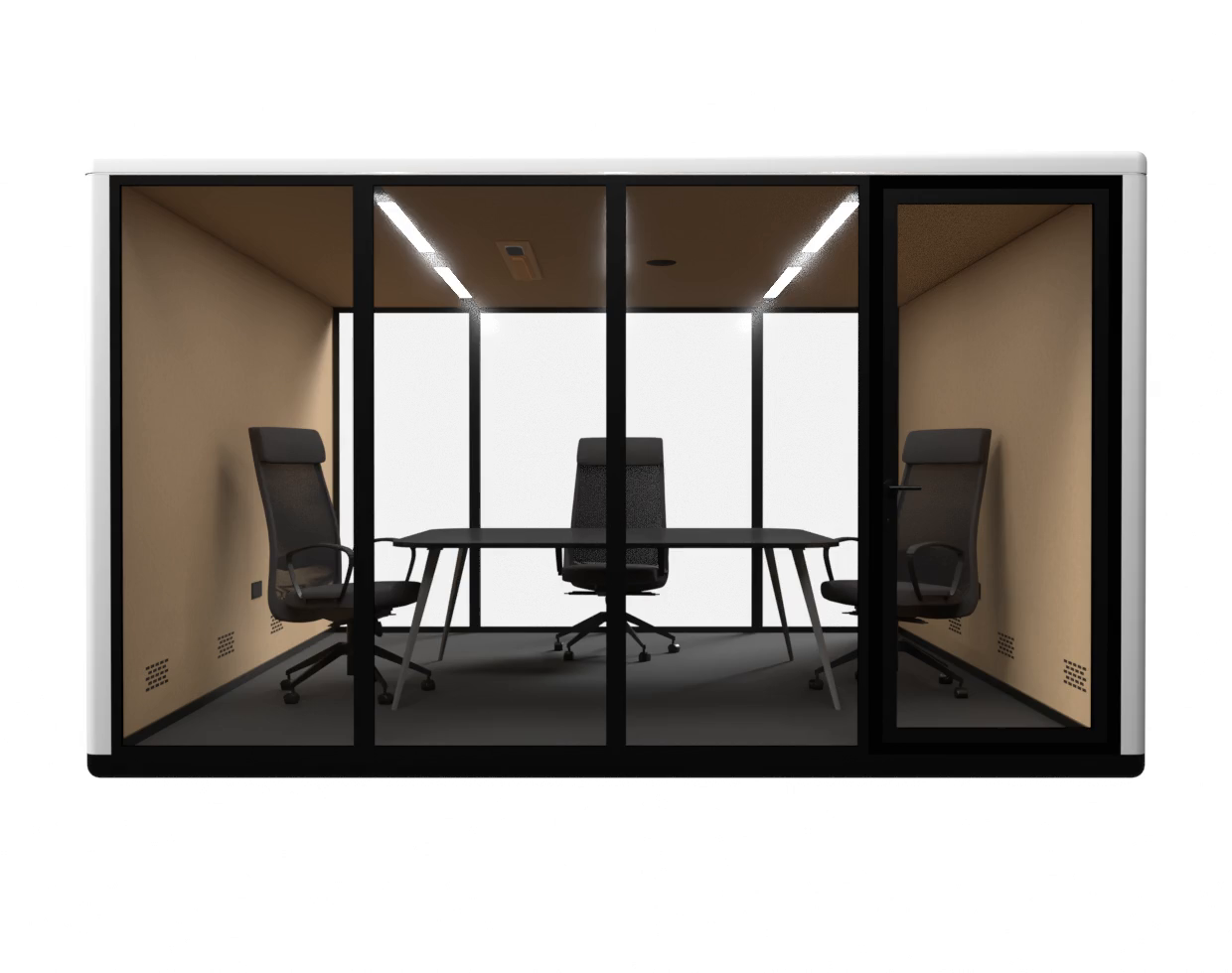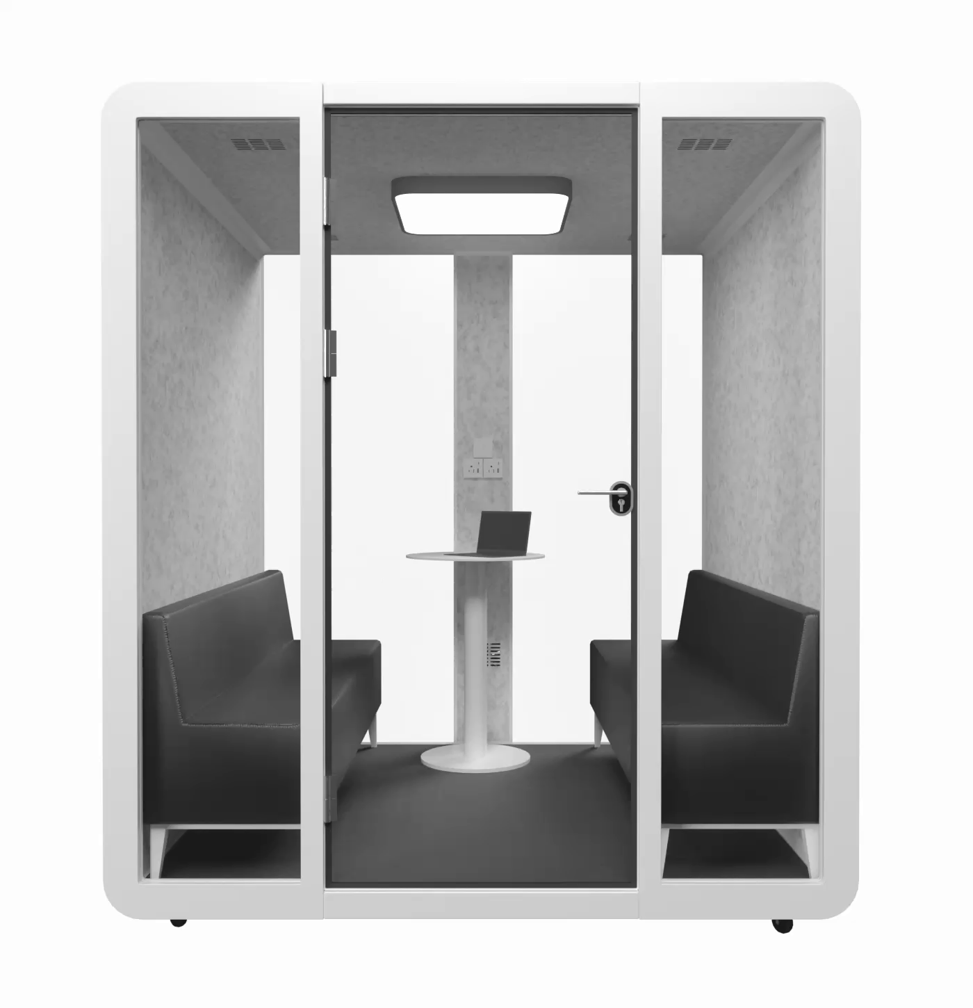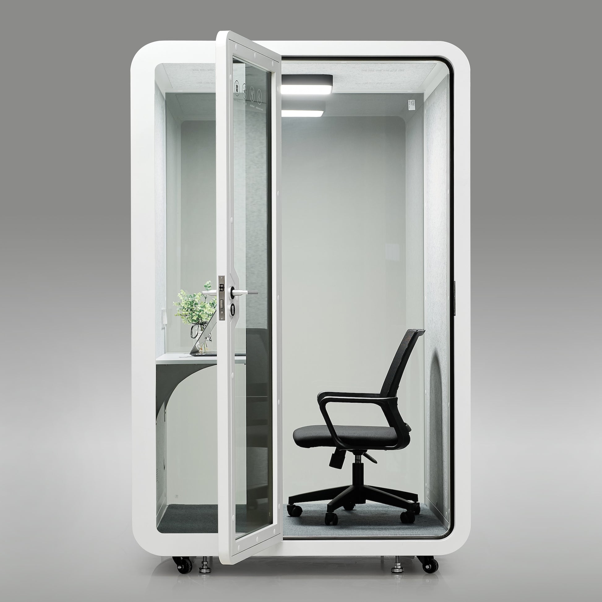 SGS-certified Class-A acoustic rating for distraction-free focus. Dual fan ventilation maintains comfort with minimal noise. Integrated AC power, USB-A and USB-C ports with natural LED lighting support continuous work.