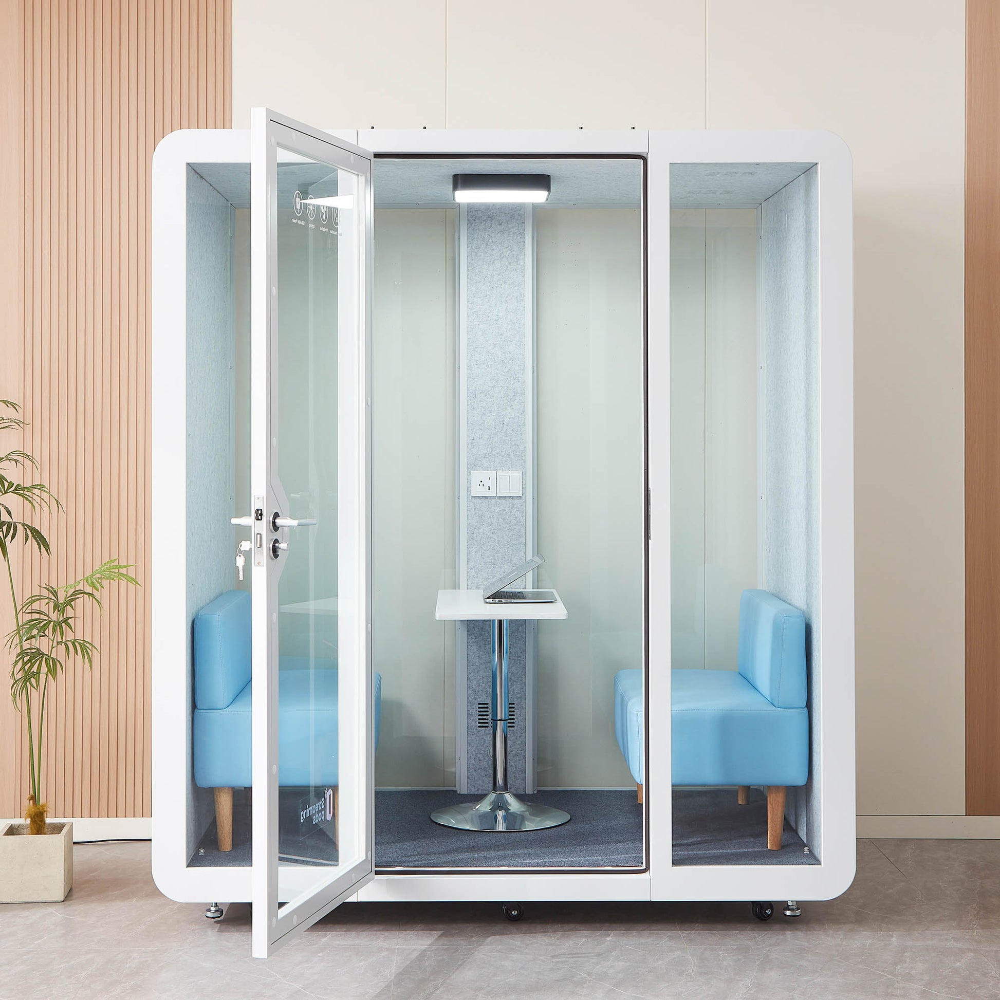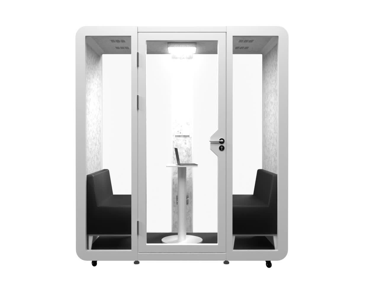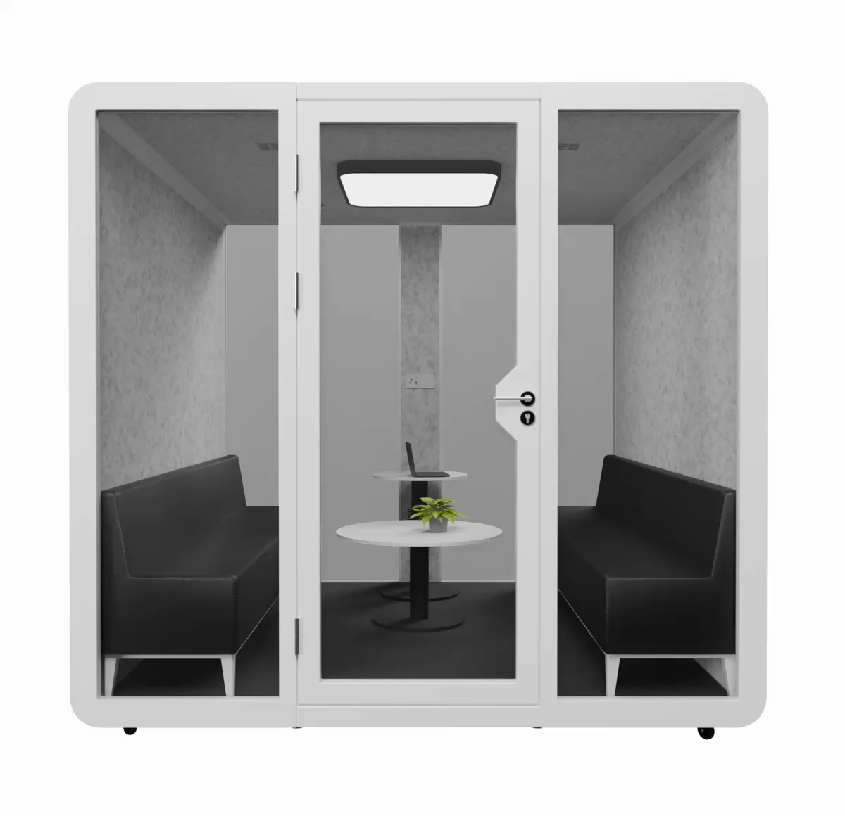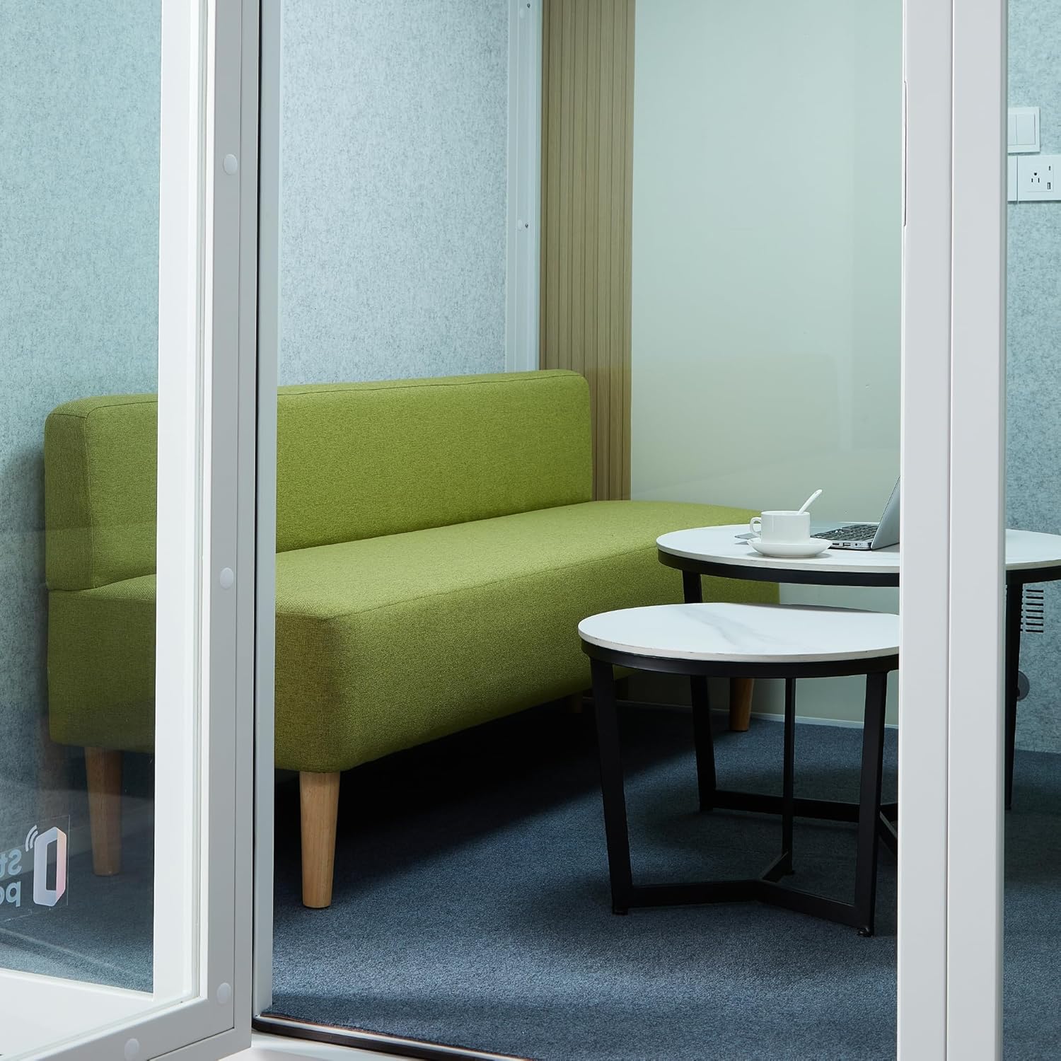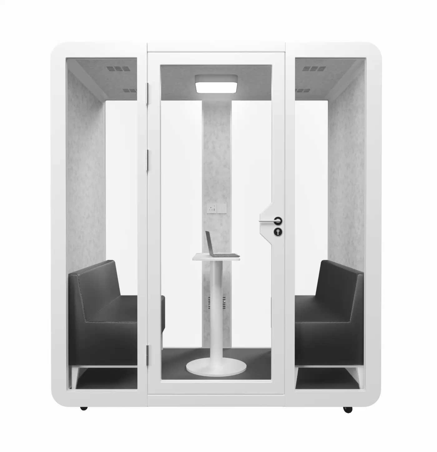 SGS-certified Class-A acoustic rating for distraction-free focus. Dual fan ventilation maintains comfort with minimal noise. Integrated AC power, USB-A and USB-C ports with natural LED lighting support continuous work.