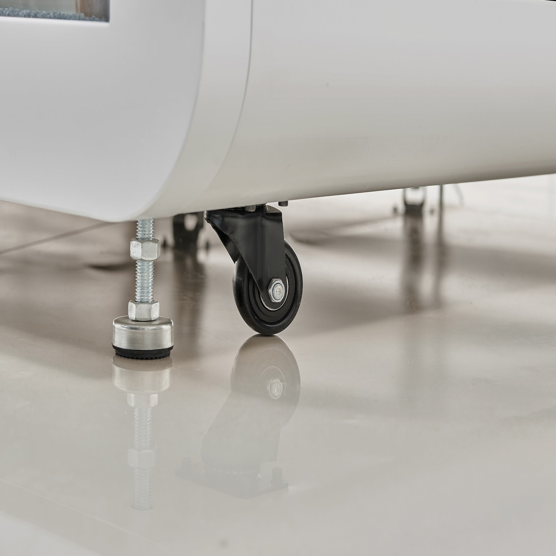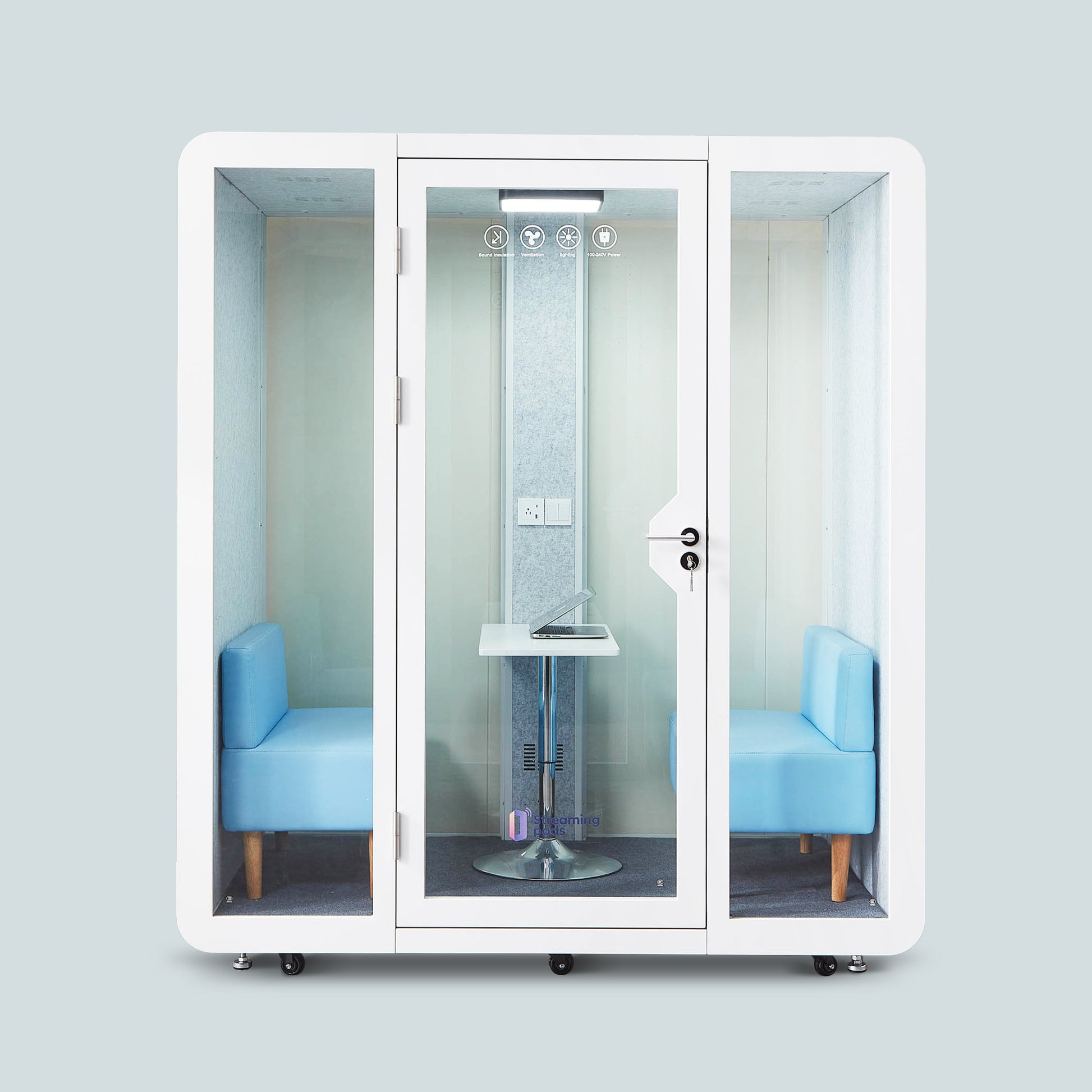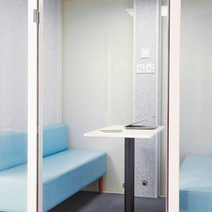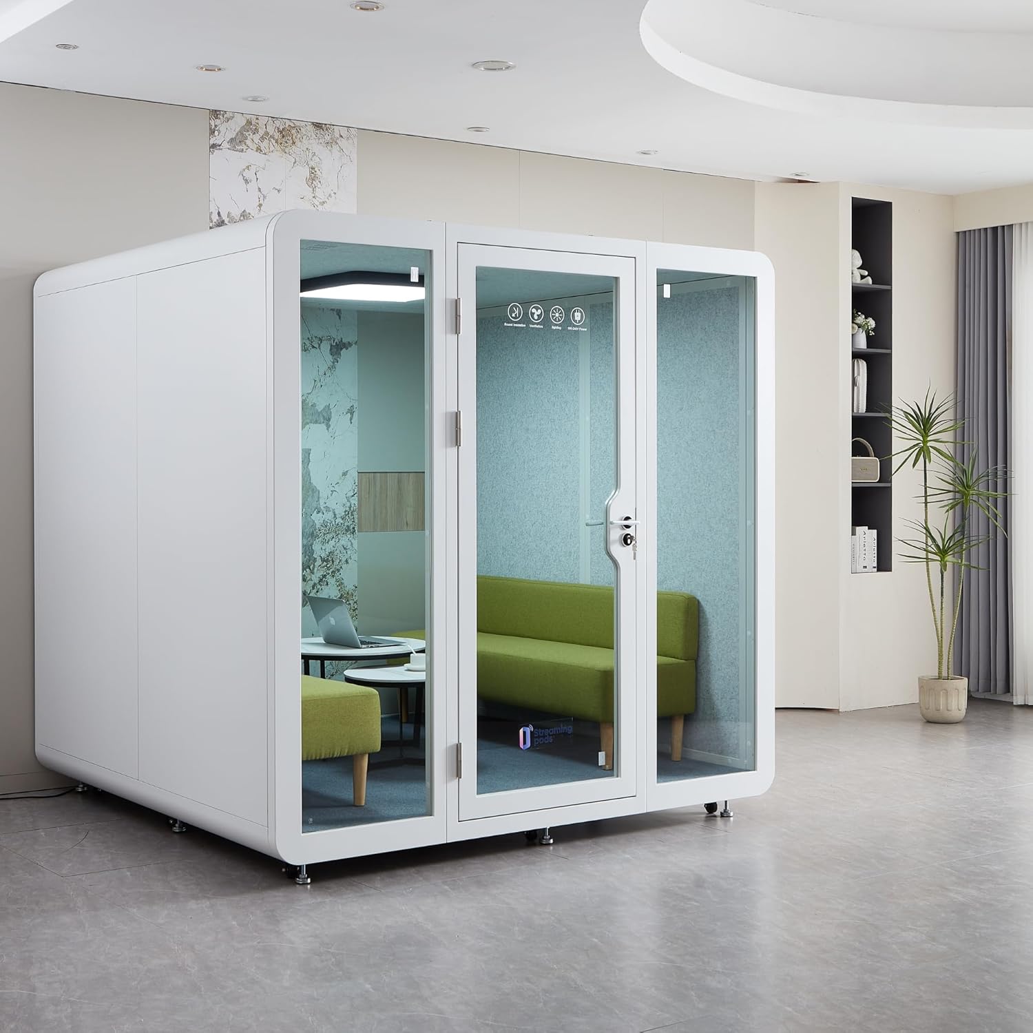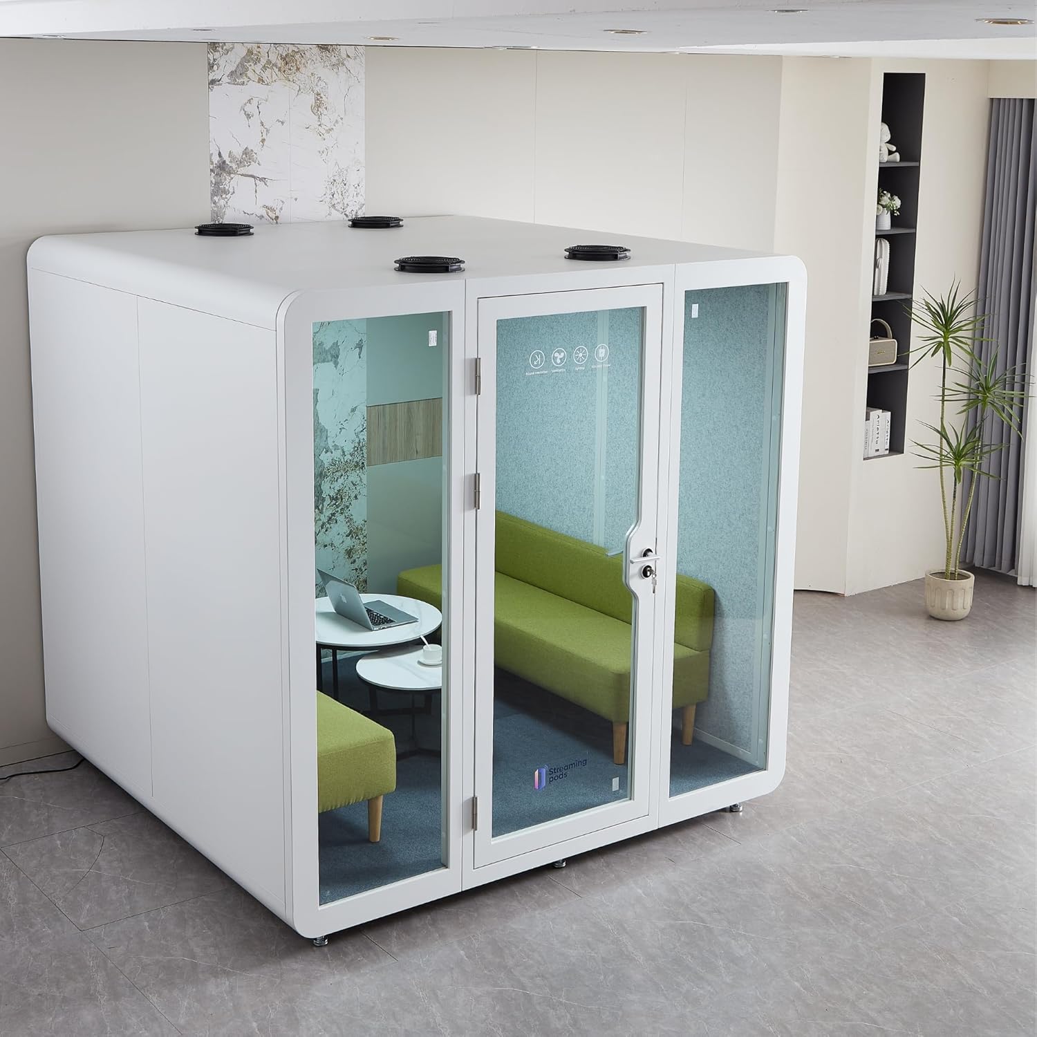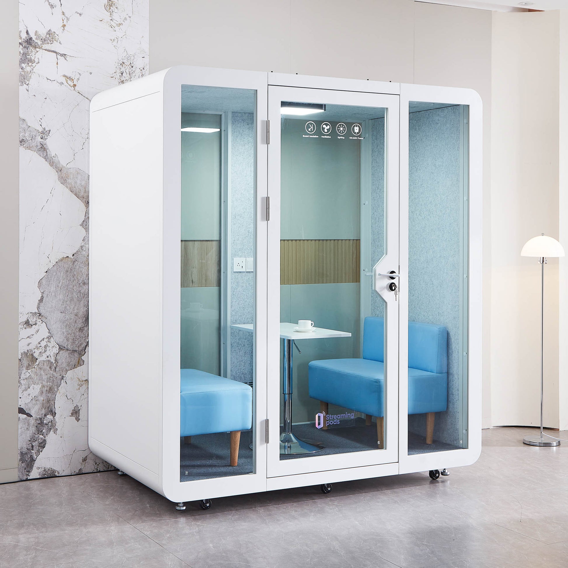 SGS-certified Class-A acoustic rating for distraction-free focus. Dual fan ventilation maintains comfort with minimal noise. Integrated AC power, USB-A and USB-C ports with natural LED lighting support continuous work.